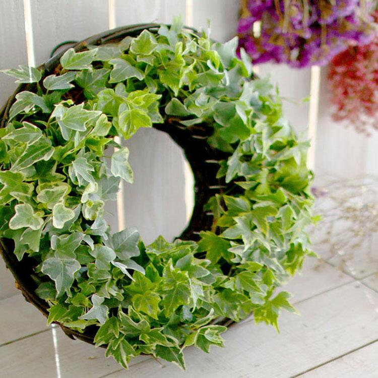 造花 アーティフィシャルフラワーリース アイビーリース ホワイトグリーン 造花 アートフラワーの通販店 あーとみゆき